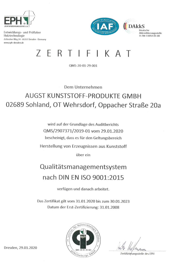 Wir sind seit 2008 nach DIN EN ISO 9001 zertifiziert.